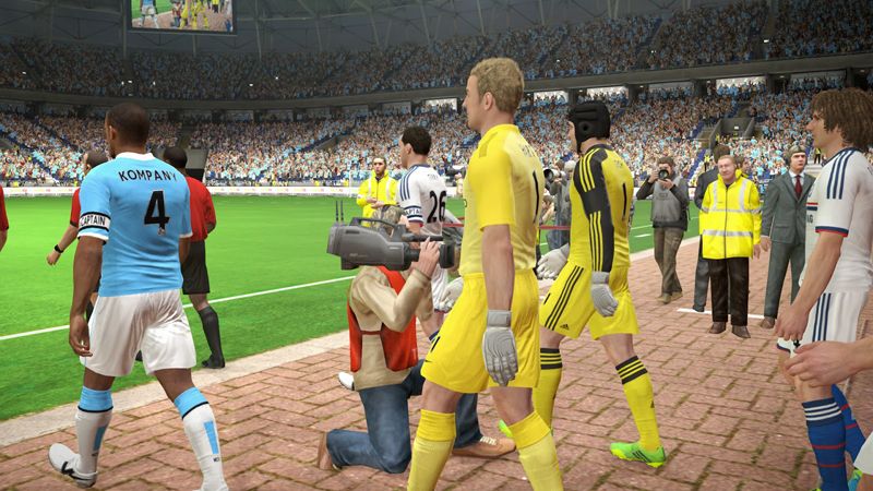 بهتر است کمی مثبت نگر باشیم PES 2014 .بسیار زیباست و نسبت به نسخه های قبلی اش پیشرفت چشمگیری داشته است. استادیومی که من در آن نسخه کوتاهی از بازی را بازی کردم، دقت جزئیات بسیار بالایی داشت و اتمسفری همانندیک استادیوم واقعی احساس می شد و تماشاگران هم دیگر همانند ربات های زشت نبودند! تماشاچیان پرچم های تیمشان را برافراشته بودند و با پیروزی تیم مقابل جوی متشنج به خود می گرفتند! ولی تا به اینجا بهترین ویژگی بصری بازی PES 2014بازیکنان است.فایده ای که استفاده از موتور فاکس برای بازی داشته است بسیار بارز بوده است. تکستچرهای پوست فوق العاده بنظر می رسند. در بازبینی گل ها و خوشحالی پس از به ثمر رسیدن گل شما می توانید به راحتی رگ های زیرپوست بازیکنان را در حال تپش ببینید. یا ریزش عرق از صورت بازیکنانی که بیشتر فعالند را ببینی.و شباهت برخی بازیکنان مشهور به چهره واقعی شان همانند بالوتلی، اوزیل و شواین اشتایگر بطور صادقانه ای زیاد است.